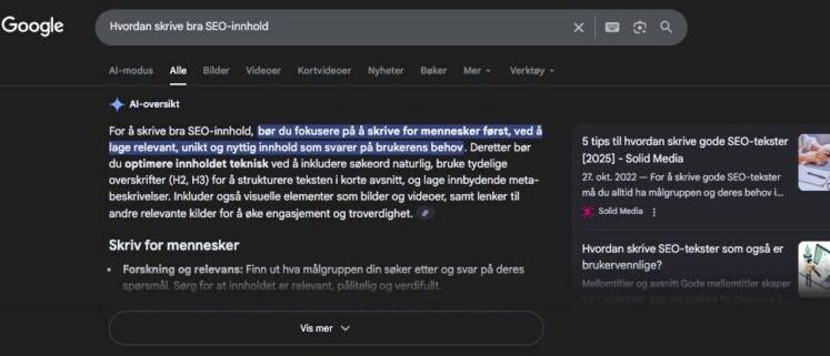 Google launched AI Overviews in Norway in May this year. The share of searches that received such summaries at the top increased rapidly, and today you see this in the vast majority of SERPs (search engine results pages).