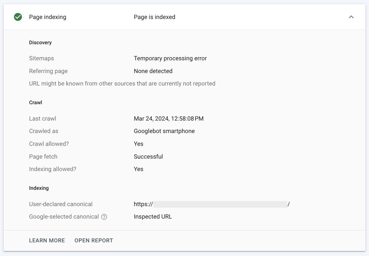Annen informasjon du kan finne her er når Google sist gikk over den bestemte URL-en, og begrunnelse på hvorfor URL-en ikke er blitt indeksert.