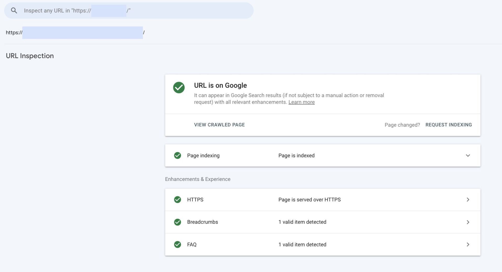 En annen nyttig funksjon i Google Search Console er “URL-inspection”. Her kan du sjekke status på hvordan en bestemt side blir indeksert og vist i Googles søkeresultat.