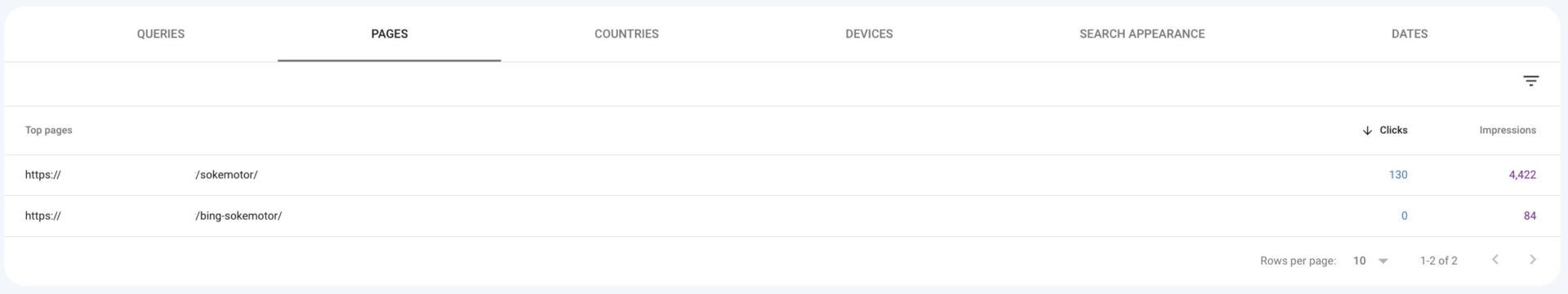 Hvis du trykker deg inn på et spesifikt søkeord og deretter på sider, vil du se hvilke sider som får klikk på det aktuelle søkeordet. På denne måten kan du for eksempel identifisere internkonkurrerende innhold, dersom det dukker opp flere sider på samme søkeord.